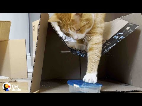 An adorable rescued cat named Oliver, who loves all sorts of plastic containers, received a special delivery from his humans that contained twenty of his favorite items. At first, Oliver didn’t understand the gift, so he played inside the box instead. It’s only when his human Robin April opened the containers that he realized what treasure lay before him.